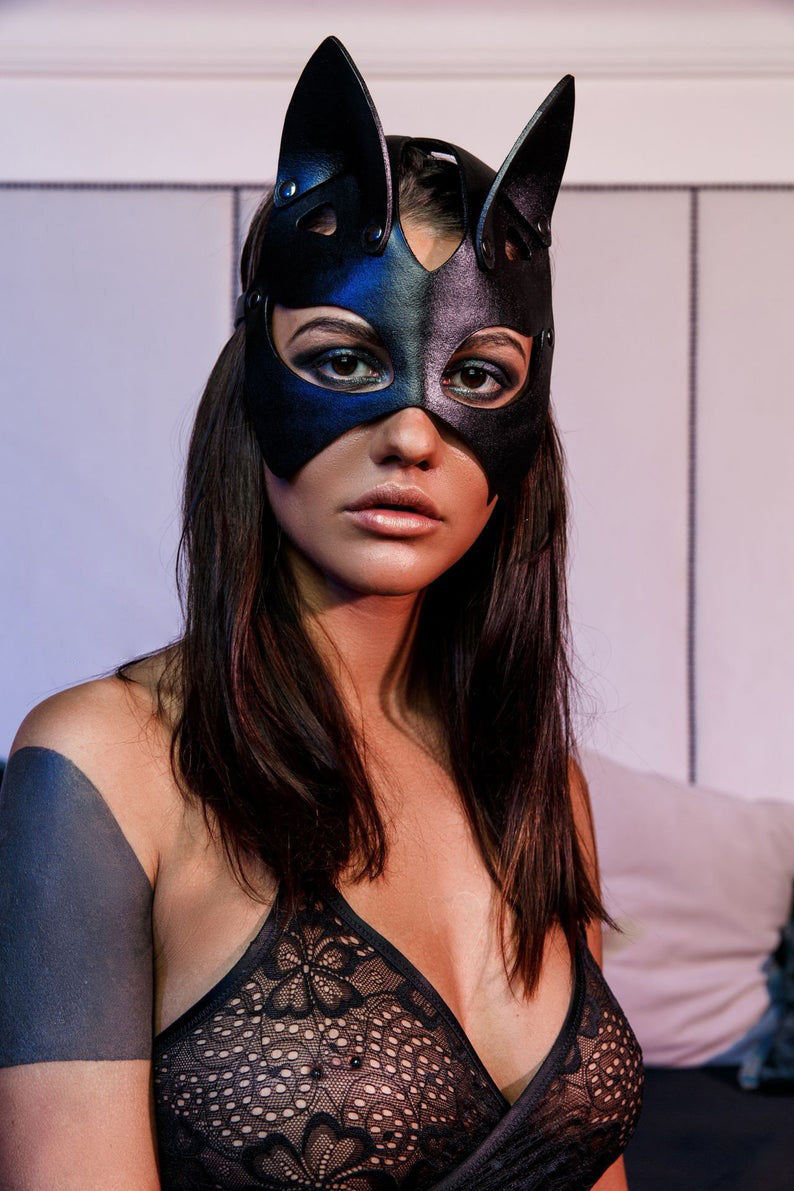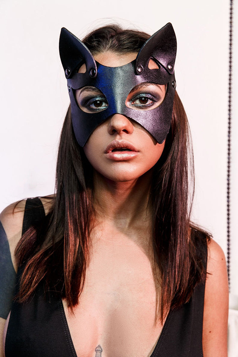 This nubuck leather-look mask features a soft, rough texture and leaves the eyes and mouth uncovered. The polyurethane coating adds durability and a sleek finish.