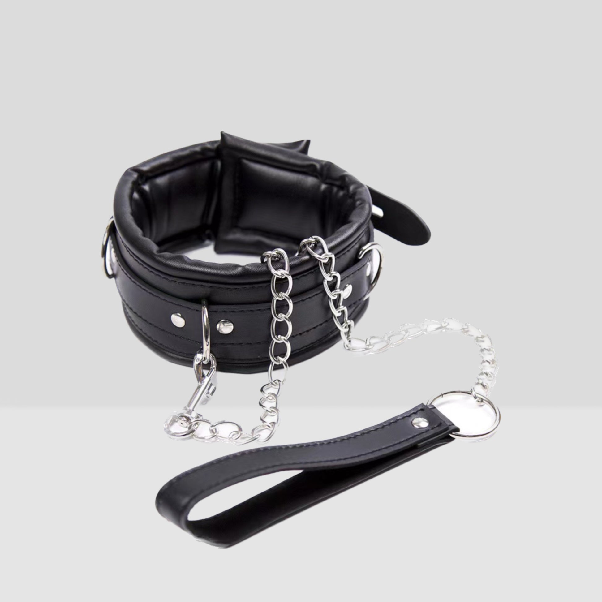 Elevate your bondage play with this expertly crafted collar and leash set. Made of metal and durable faux leather with foam lining, it ensures both comfort and durability, even during rough use. The collar can be easily adjusted from 40 to 48cm for a perfect fit. The leash attaches with secure clip fasteners, offering endless playtime possibilities when paired with other toys like handcuffs, harnesses, and nipple clamps. Unleash your creativity and personalize your bondage experience with this versatile set.