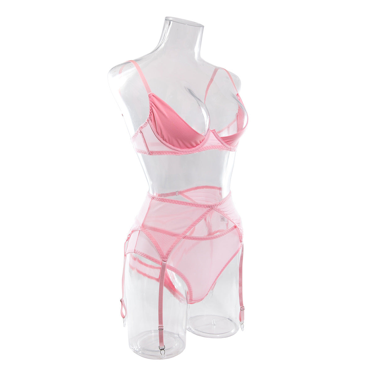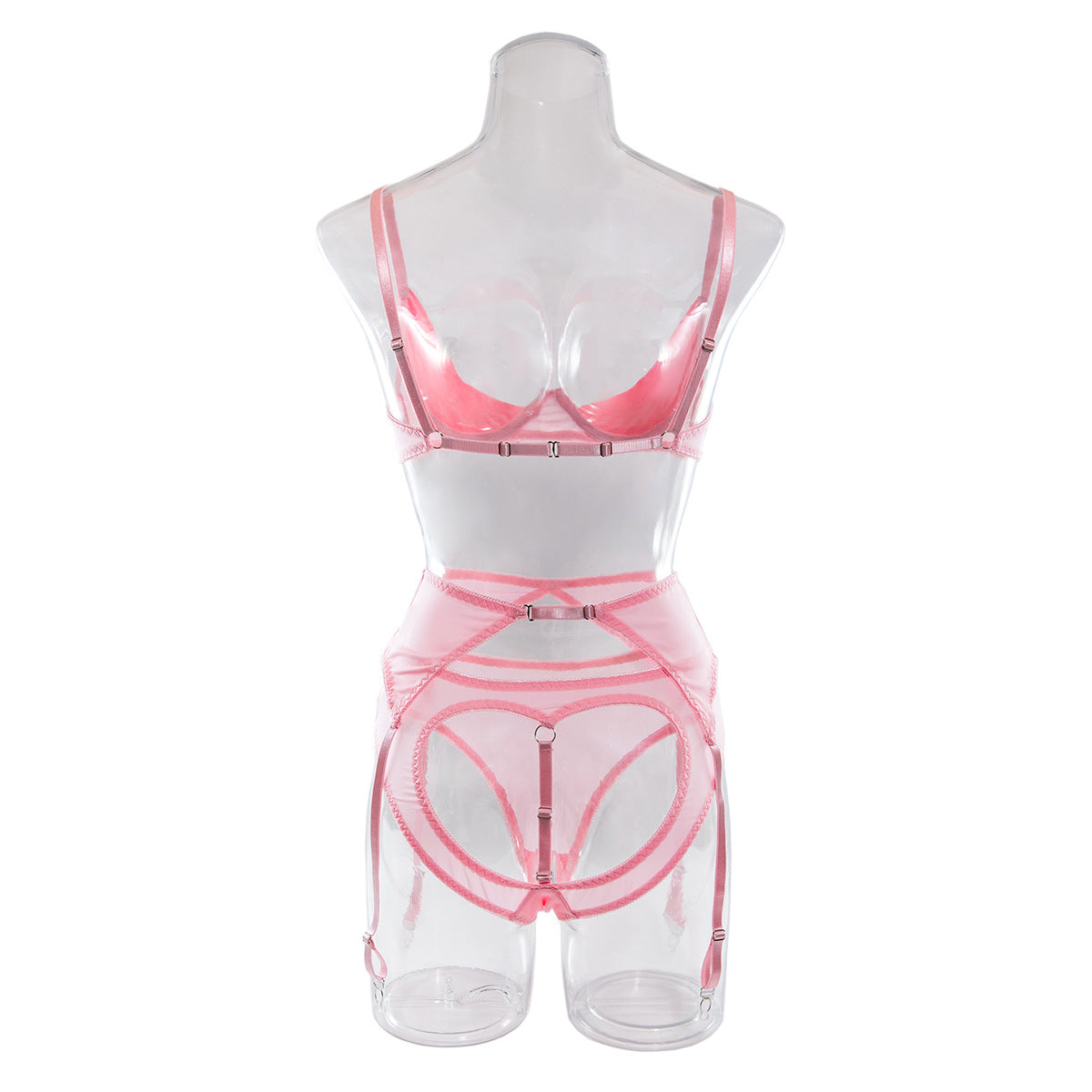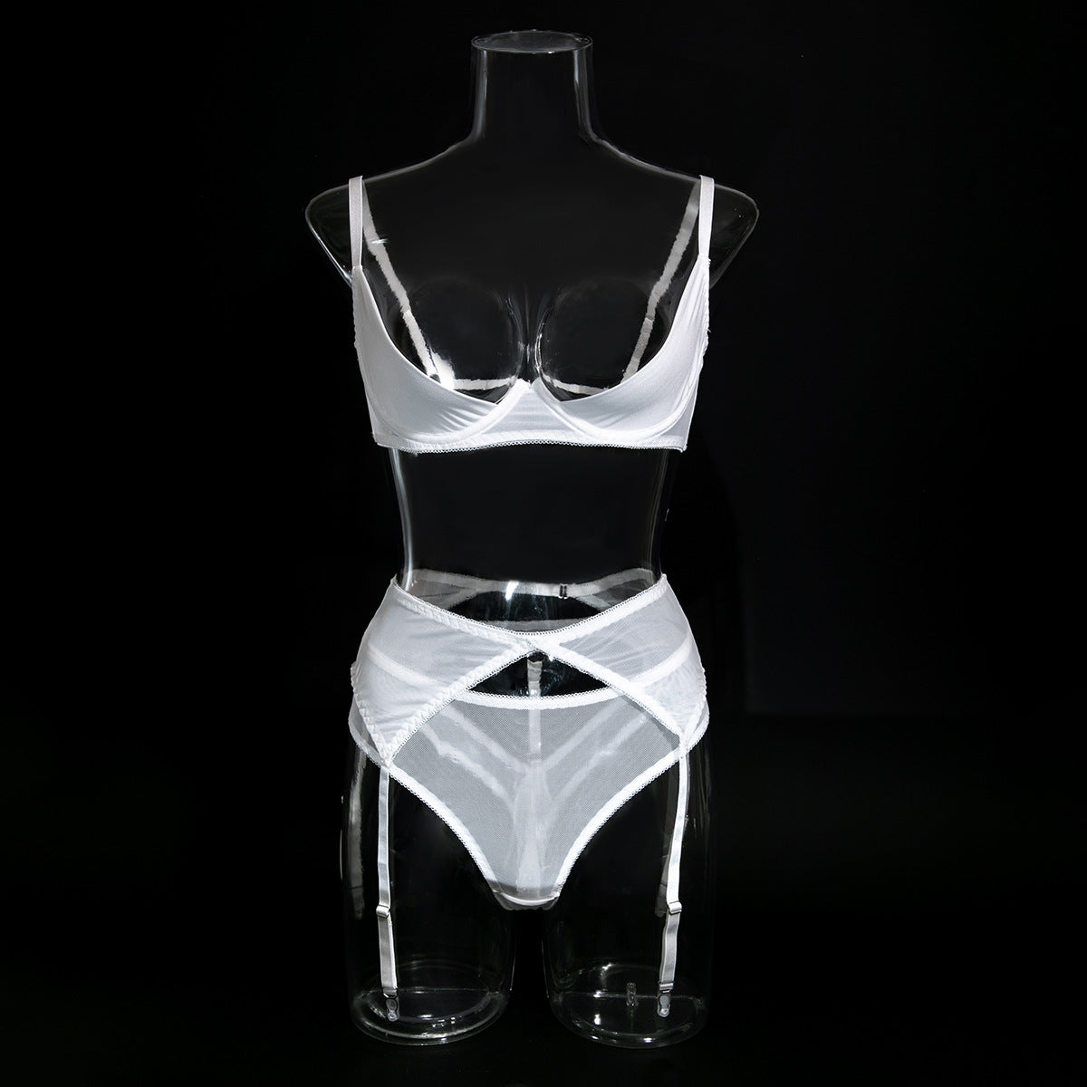 1/4 cup Bra Hollowed-out Underwear Three-Piece Set