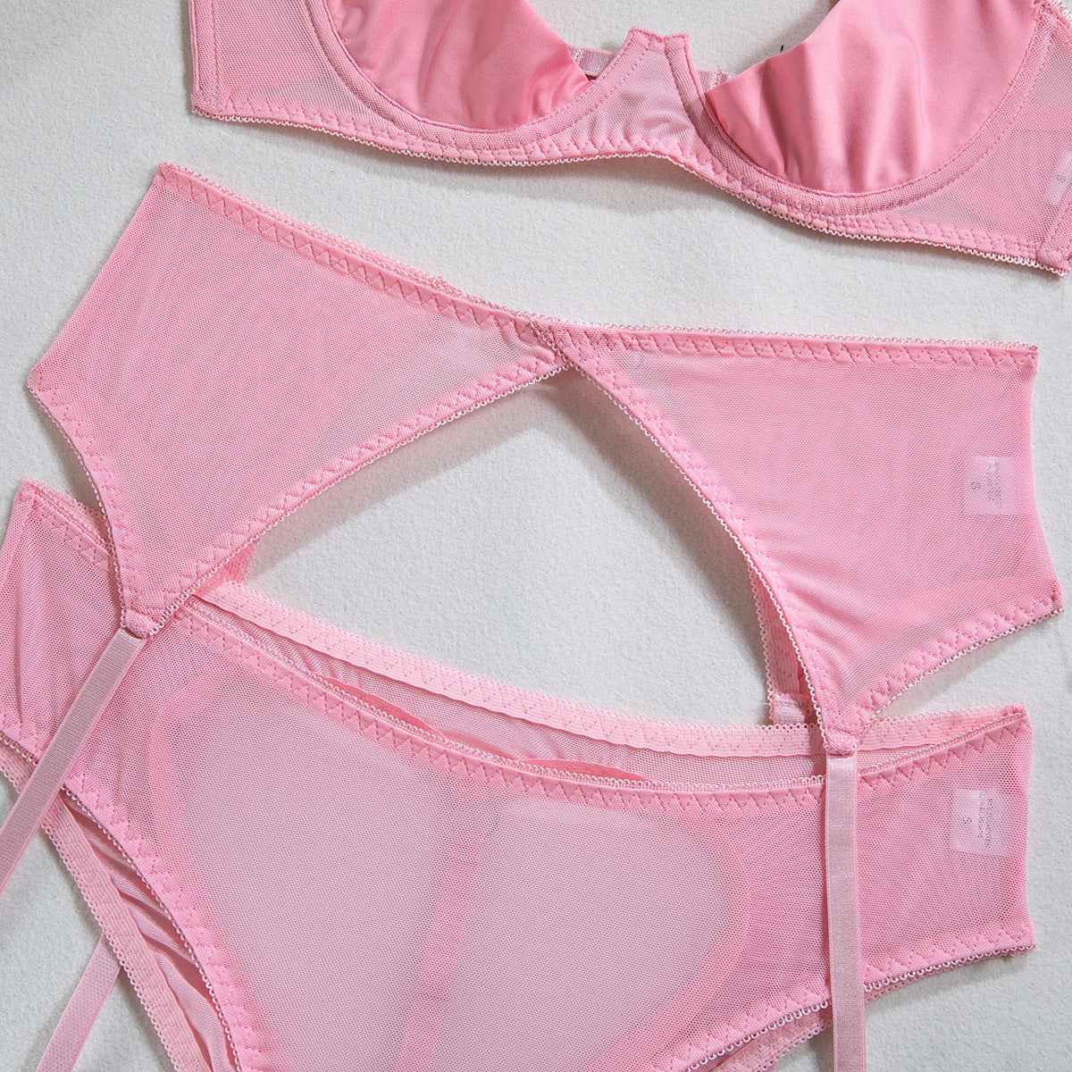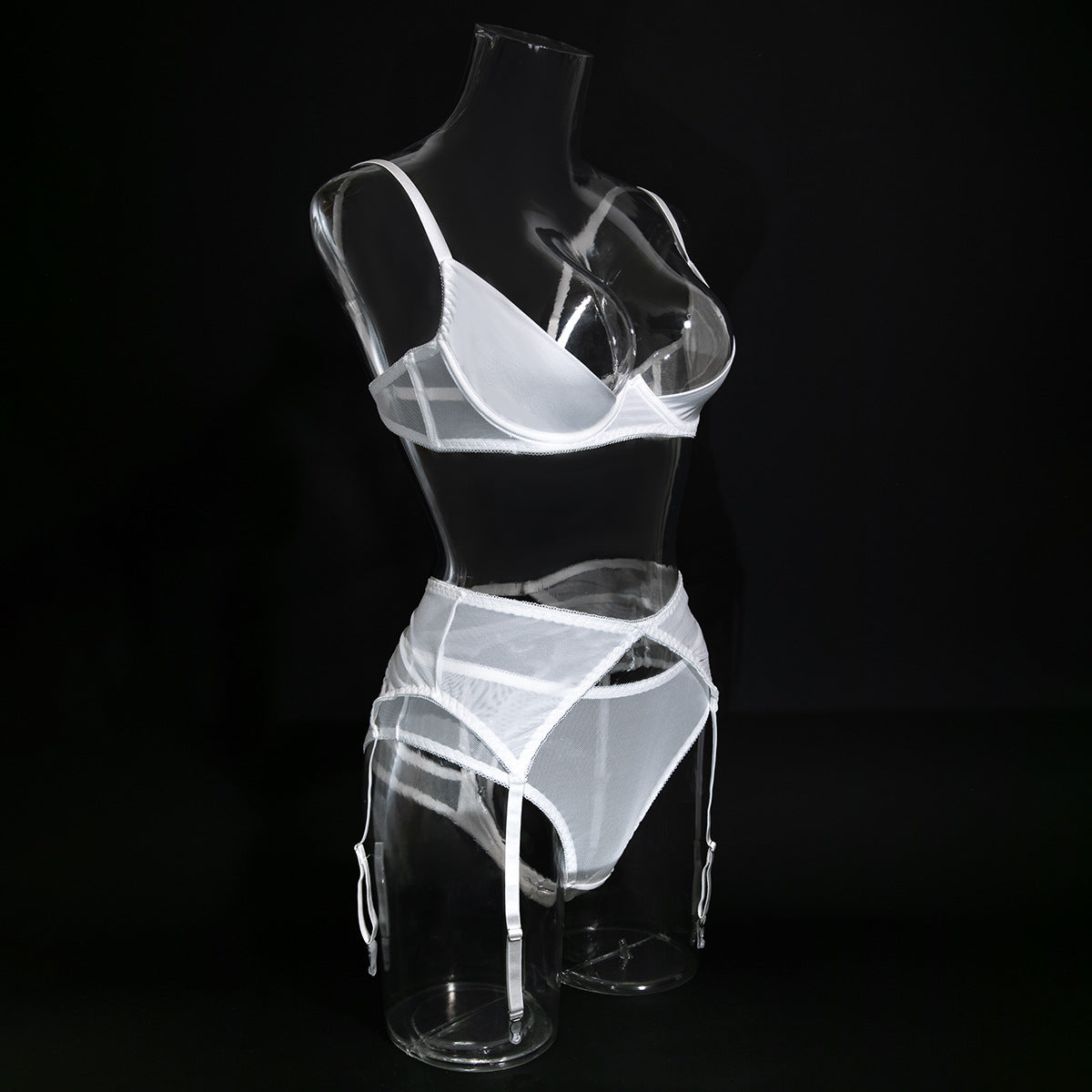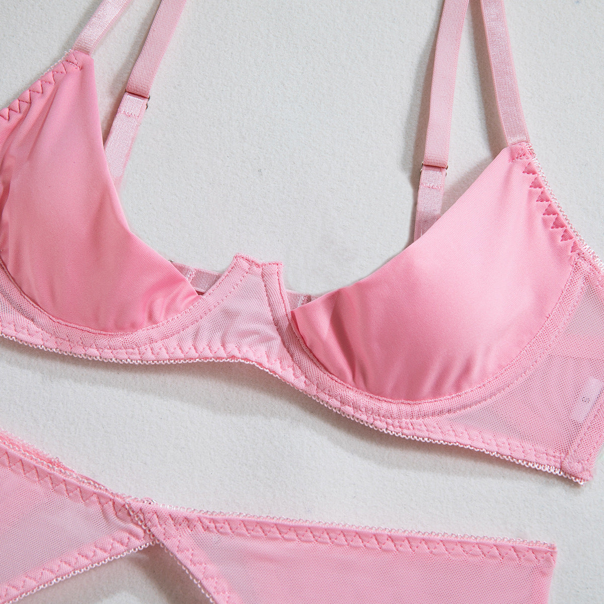 1/4 cup Bra Hollowed-out Underwear Three-Piece Set
