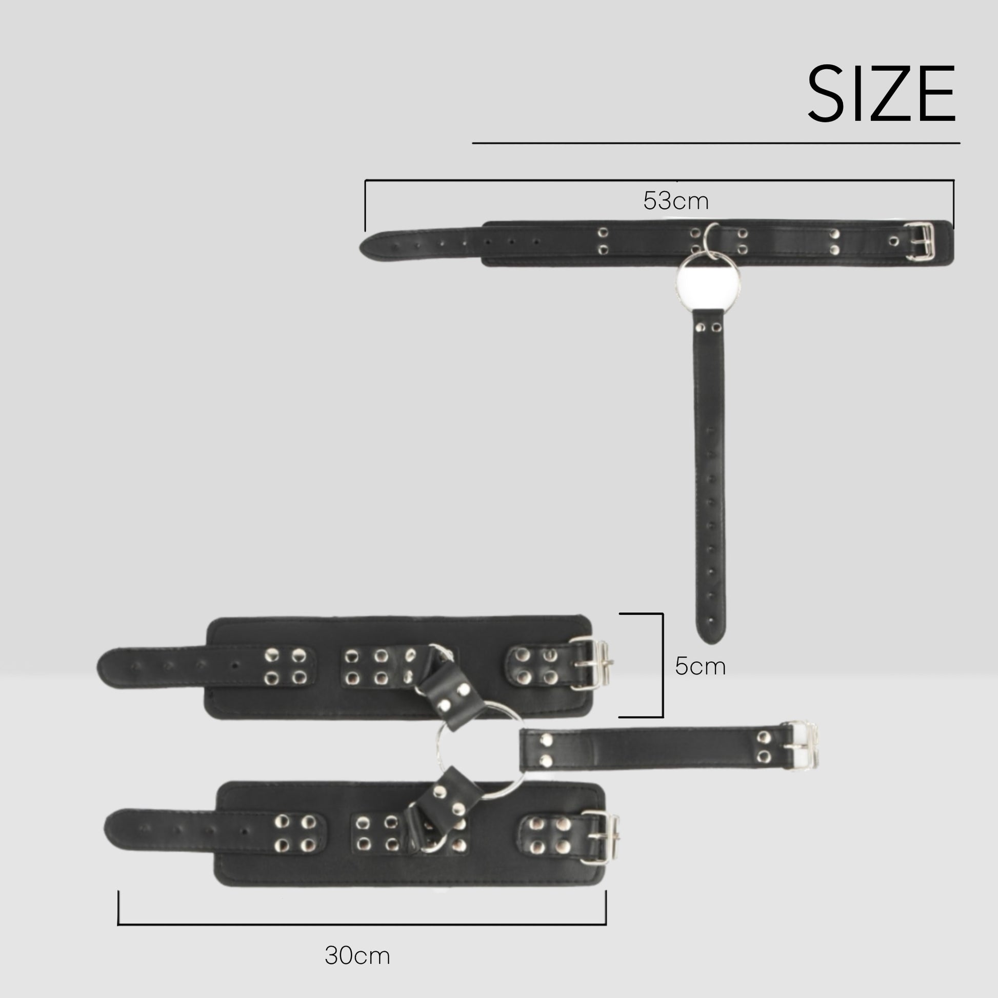 Experience complete control over your sub with this bondage set consisting of a collar and handcuffs. The sturdy faux leather and foam lining ensure durability and comfort, while the adjustable sizing allows for the perfect fit. Easily detach the hand cuffs from the collar using the clip fasteners. Enhance the thrilling experience by pairing this set with other toys like ankle cuffs, ball gags, paddles, and nipple clamps.