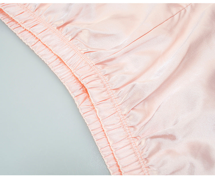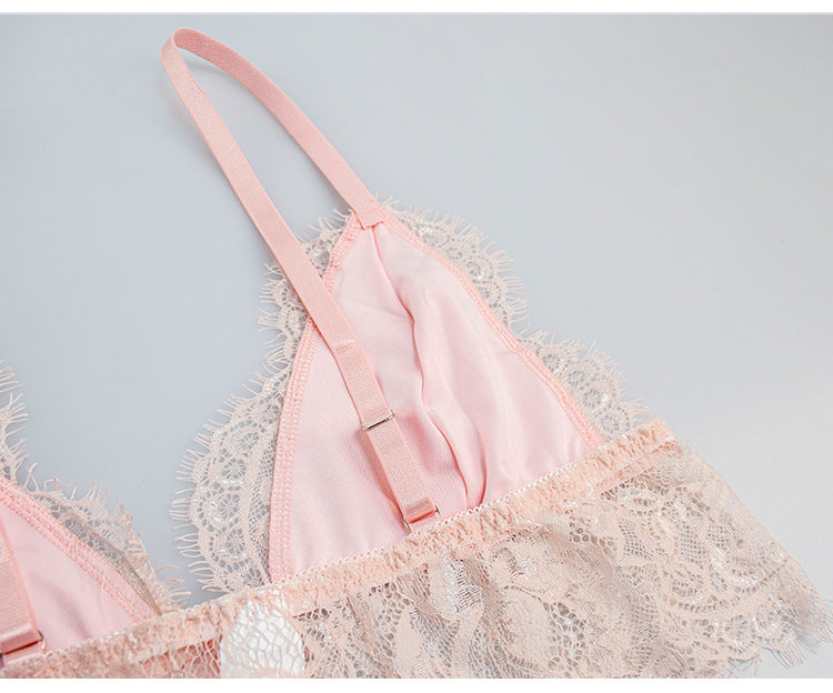 You sleep well in this comfortable 2 pcs set! Our ultra-thin, wire-free lingerie set is crafted from silky-smooth imitation silk and delicate lace. This set is perfect for various settings such as outdoor, home relaxation, or serene moments at hotel spas.