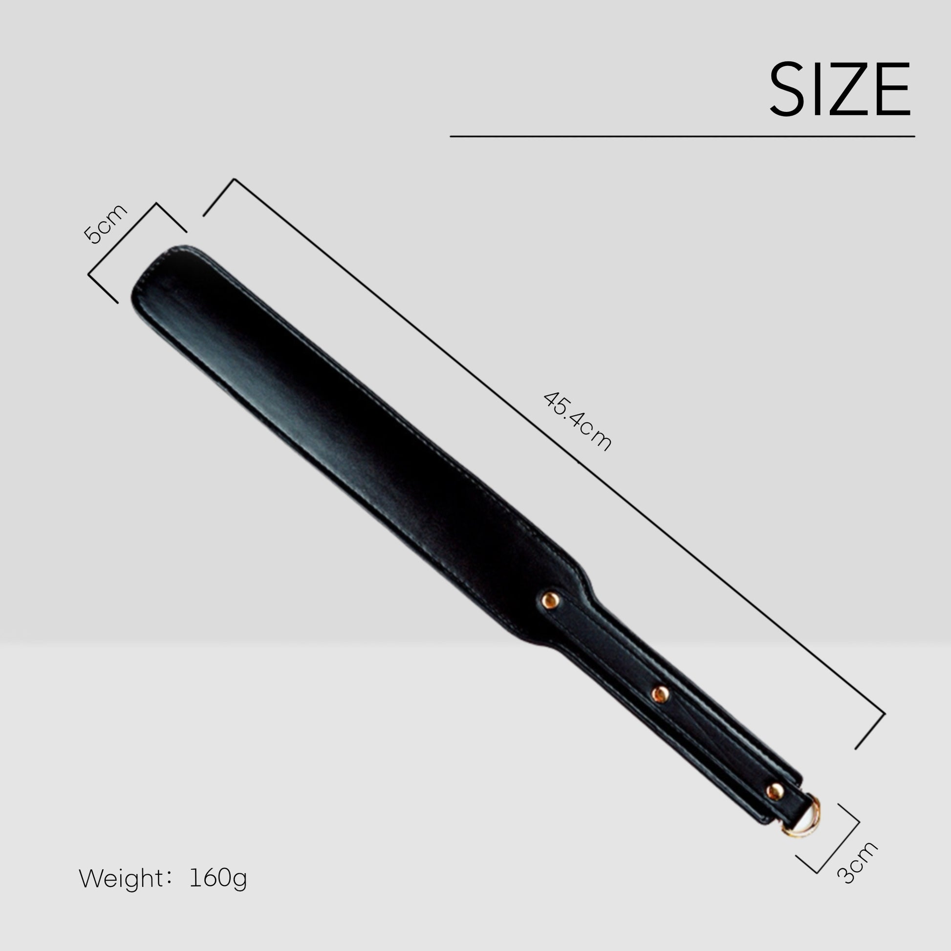 This durable paddle features a sturdy metal core, providing added strength for powerful strikes. Its synthetic leather composition is both vegan-friendly and effortless to maintain with gentle soap or toy cleaner.