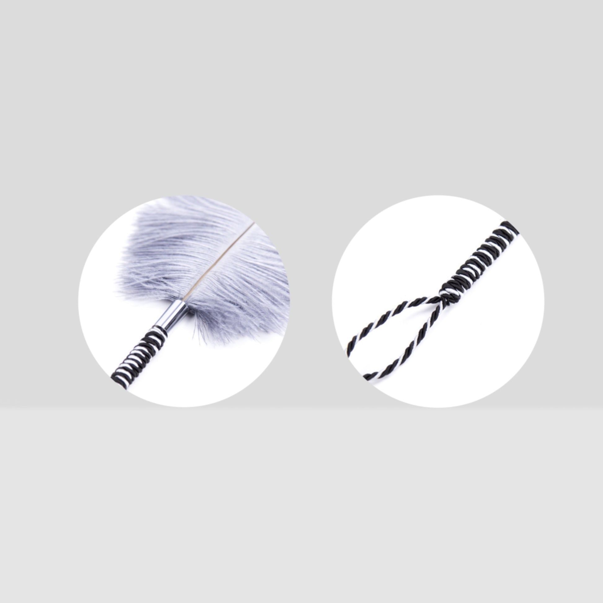 Enhance your intimate moments with a White Feather Tickler. Perfect for teasing your partner or exploring BDSM, this tool provides versatile stimulation using its long feather or pointed tip.