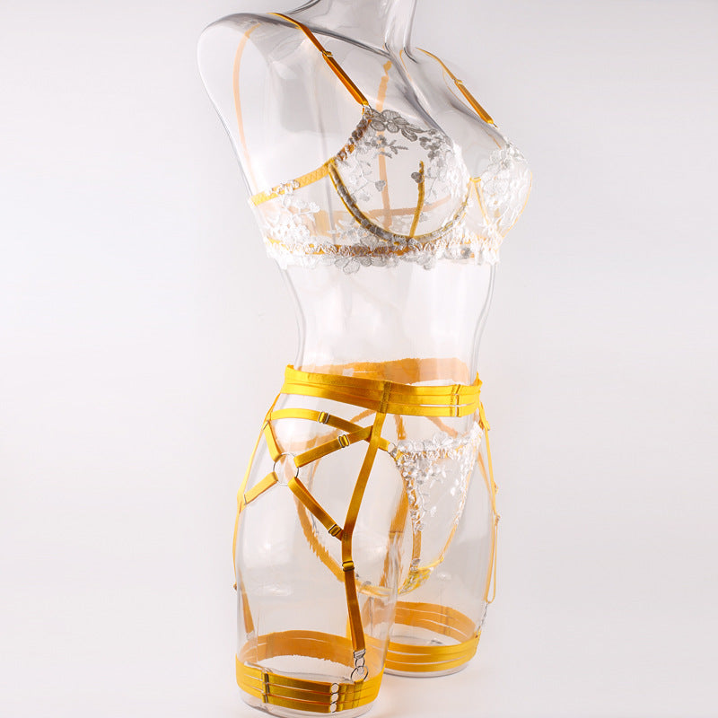 Embroidered 3 piece bra set
